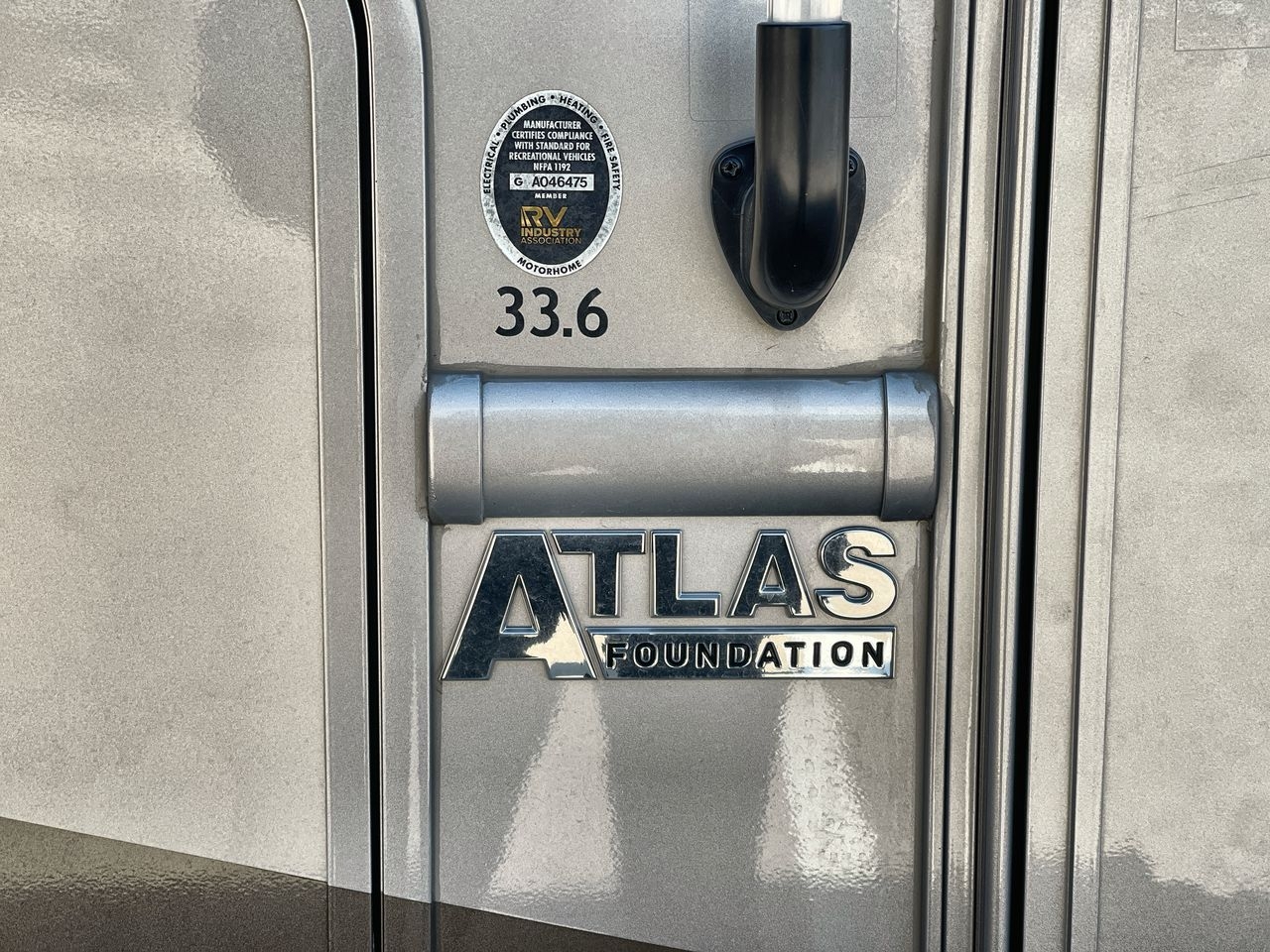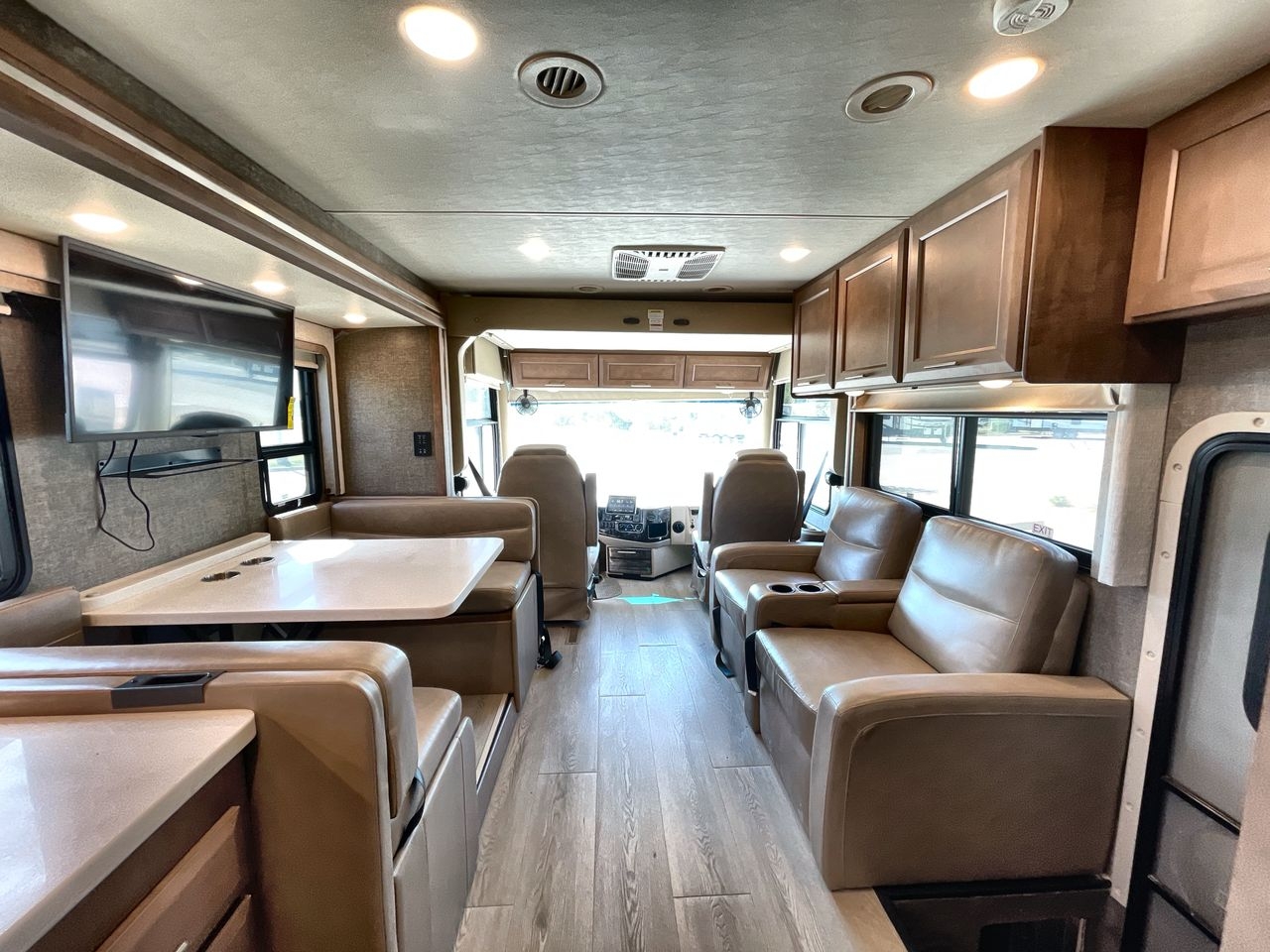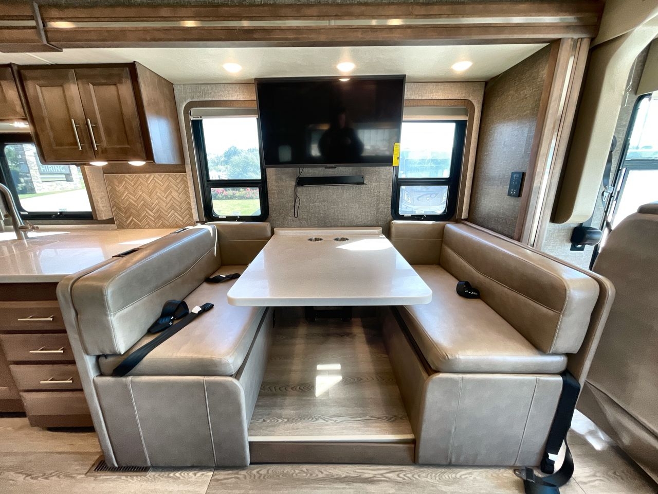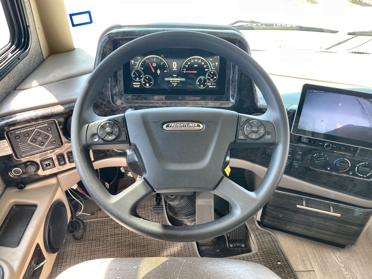 The 2022 Thor Palazzo 33.6 is a luxury Class A diesel motorhome designed for travelers seeking comfort and convenience. Featuring a spacious full-wall slide-out, this model offers an expansive living area with theater seating, a dream dinette, and a fully equipped kitchen with solid-surface countertops and residential appliances. The master suite boasts a king-size bed, ample storage, and washer/dryer prep. Additional highlights include a full bathroom with a large shower, an overhead bunk for extra sleeping space, and an outdoor entertainment system with a power awning and exterior TV. Built on a Freightliner chassis with a Cummins diesel engine, the Palazzo 33.6 delivers a powerful and efficient performance for all your adventures.