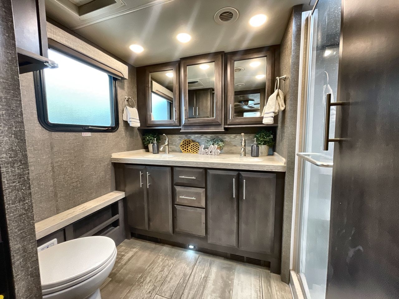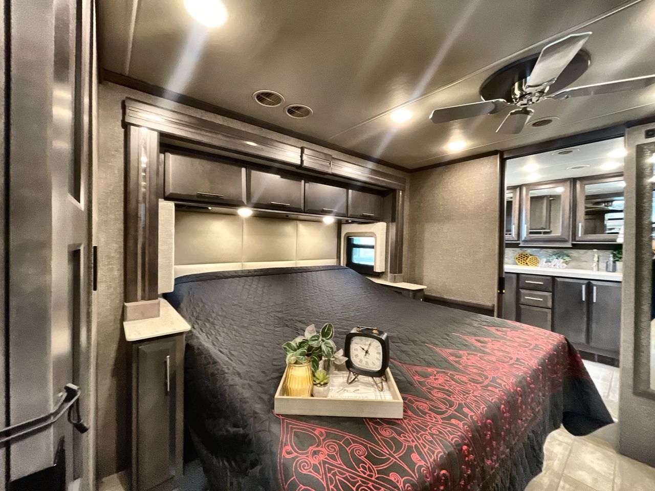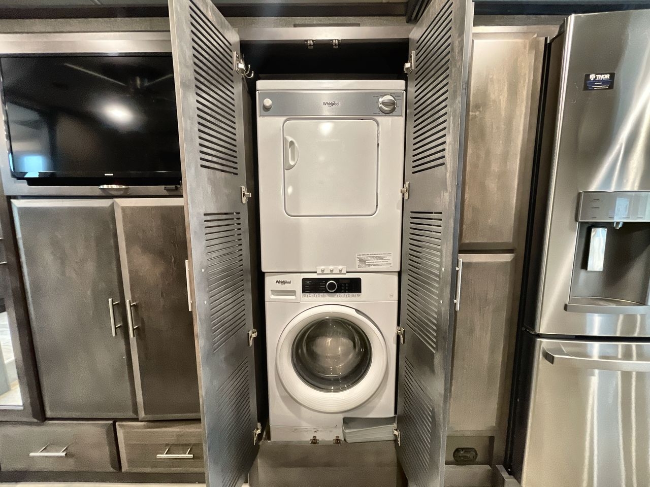- Additional Amenities: Stackable washer and dryer, rear roof access, user-friendly infotainment system, comfy captain chairs, rear cameras, and porcelain tile flooring.